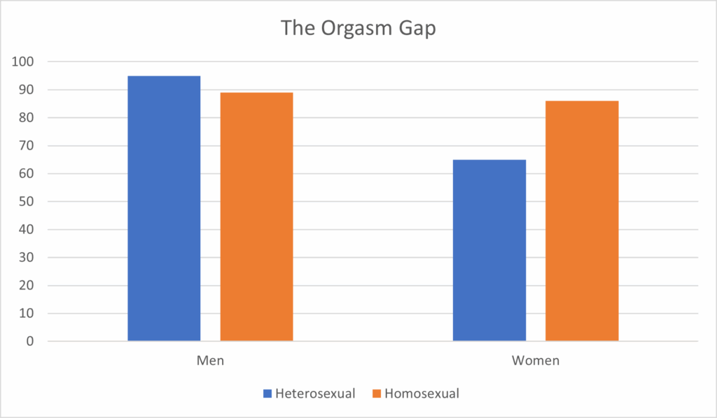 Frederick, D. A., John, H. K. S., Garcia, J. R., & Lloyd, E. A. (2018). Differences in orgasm frequency among gay, lesbian, bisexual, and heterosexual men and women in a U.S. National sample. Archives of Sexual Behavior, 47(1), 273-288. https://doi.org/10.1007/s10508-017-0939-z
