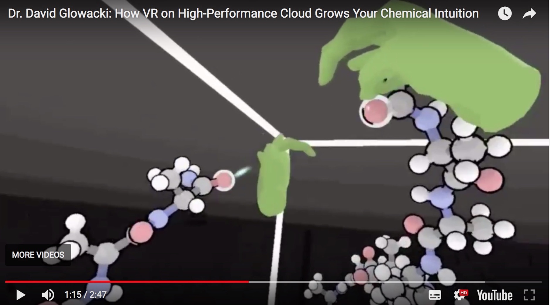 Figure 9.3.2 The use of virtual reality to foster chemical intuition, developed by Dr. David Glowacki at the University of Bristol. Click on the image to see the video.
