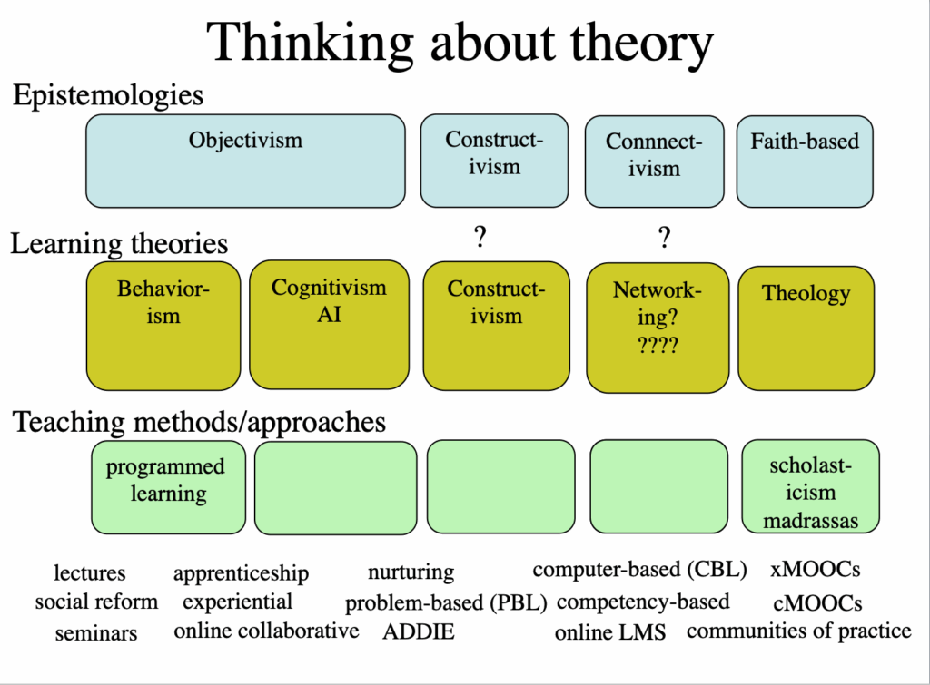 For more on the relationship between epistemologies, learning theories and methods of teaching, see: